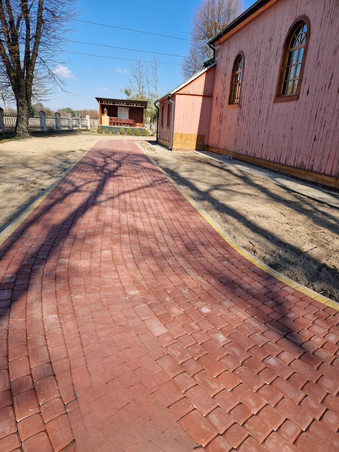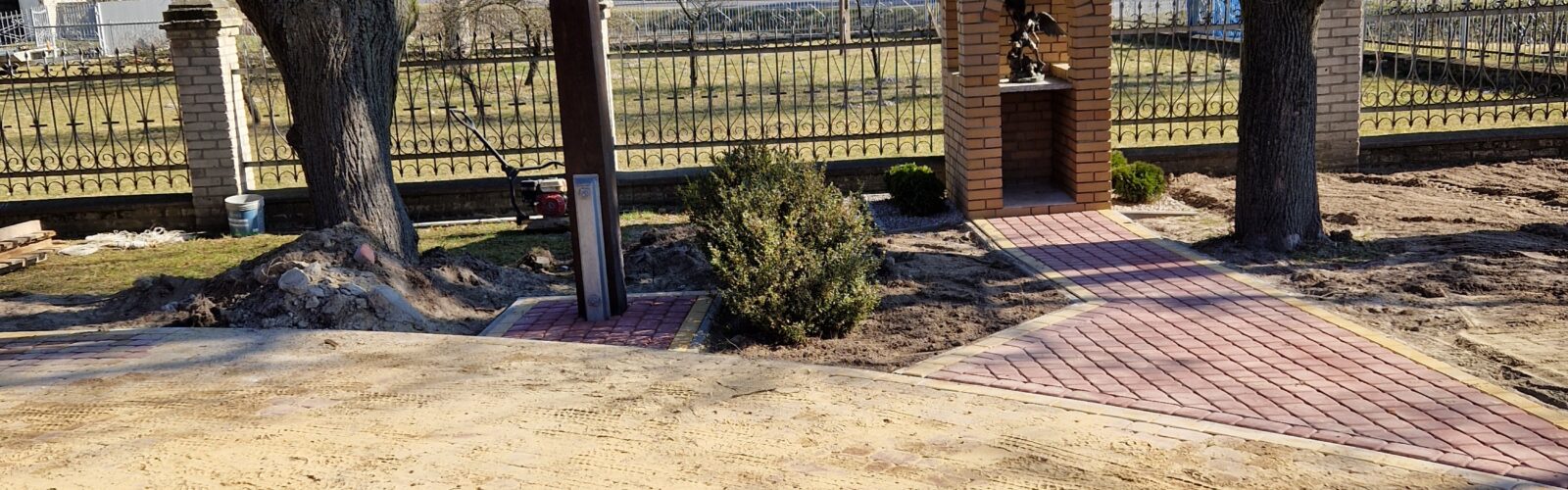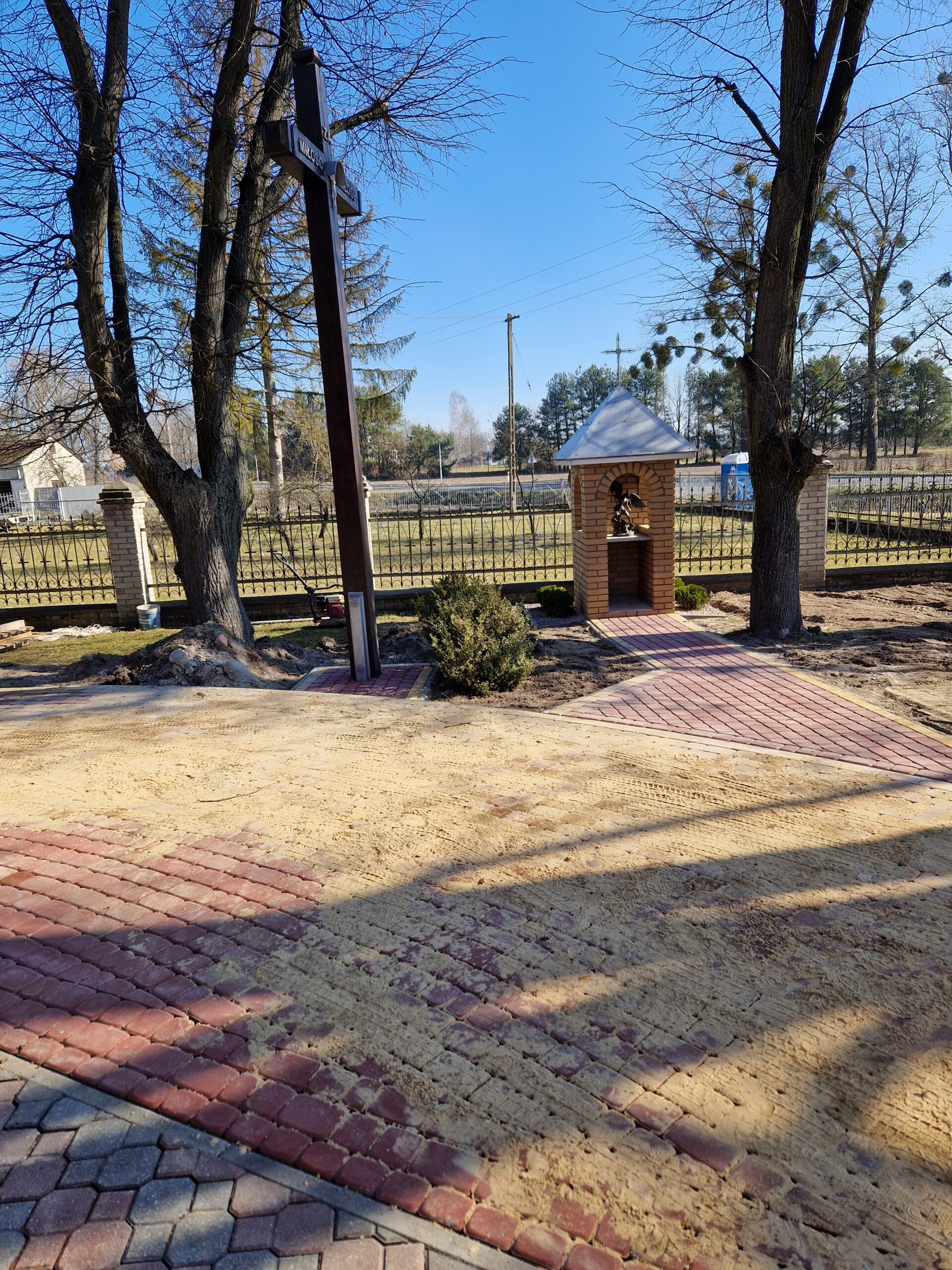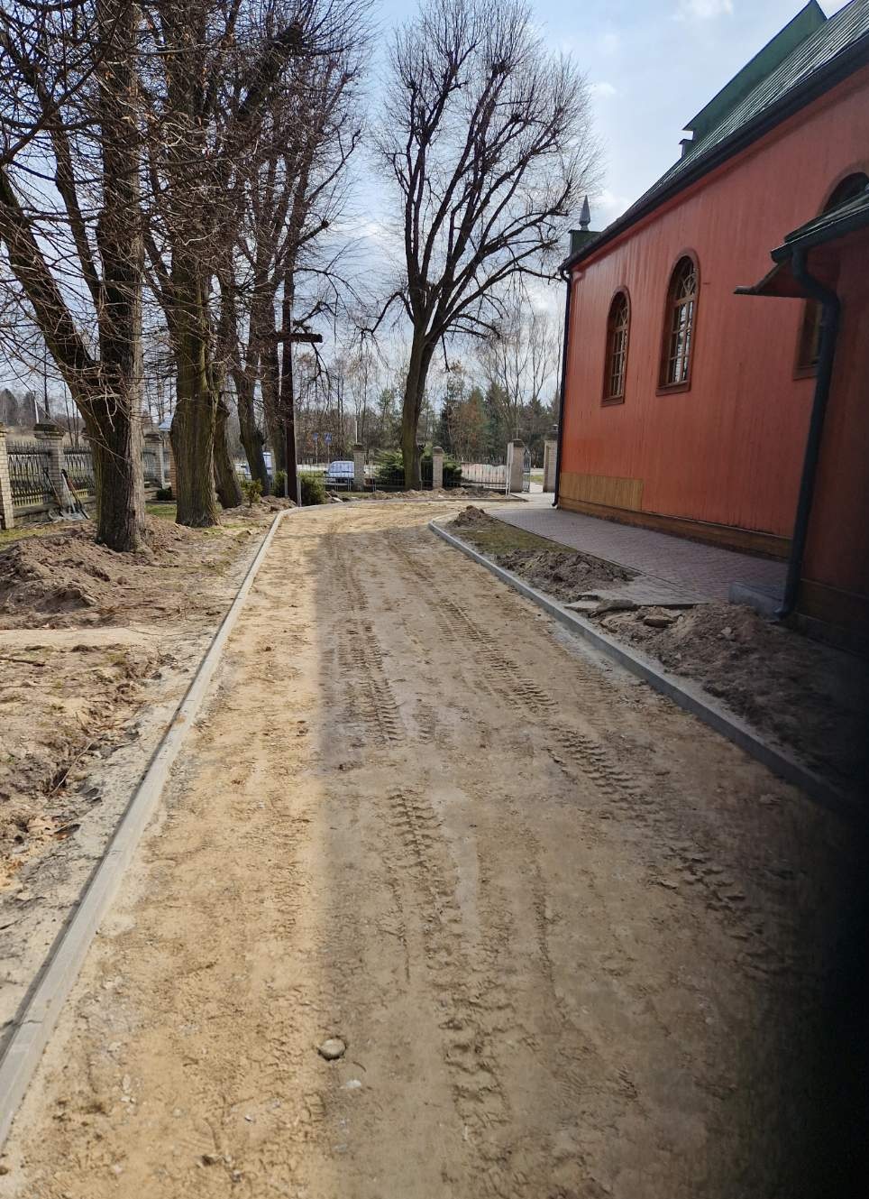 Z każdym dniem widać coraz więcej efektów! Chodnik procesyjny wokół naszego kościoła nabiera kształtów – to piękny przykład wspólnej pracy i zaangażowania.
