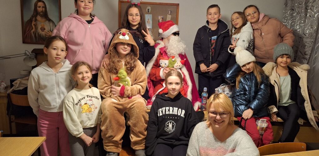 Członkowie Scholi Anielskie Nutki jak co roku byli bardzo grzeczni, co spotkało się z zasłużoną nagrodą w postaci wizyty niezwykłego gościa – Świętego Mikołaja! 😉